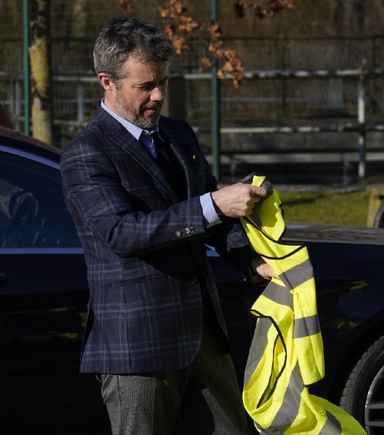 I forbindelse med det første besøg fik kronprinsen ved ankomsten udleveret en skriggul arbejdsvest.