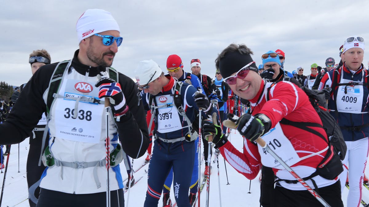 Ved det traditionsrige Birkebeiner-skiløb i Norge stillede både kronprins Haakon og kronprins Frederik til start.