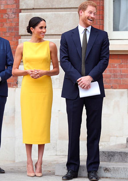 Hertuginde Meghan var ikke til at overse, da hun sammen med prins Harry deltog i en hyggelig reception i London i en vidunderlig gul sommerkjole.