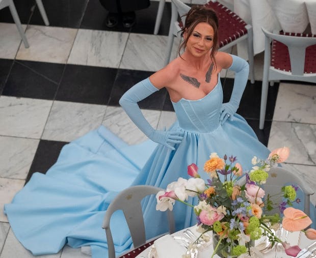 Allerede da rapper og skuespiller Tessa i februar sidste år trådte ind i Riddersalen ved kongeparrets kunstnerbal på Christiansborg Slot, tiltrak hun sig megen opmærksomhed iklædt en drøm af en baby blue "Askepot-kjole" med voluminøst skørt af Søren Le Schmidt.
