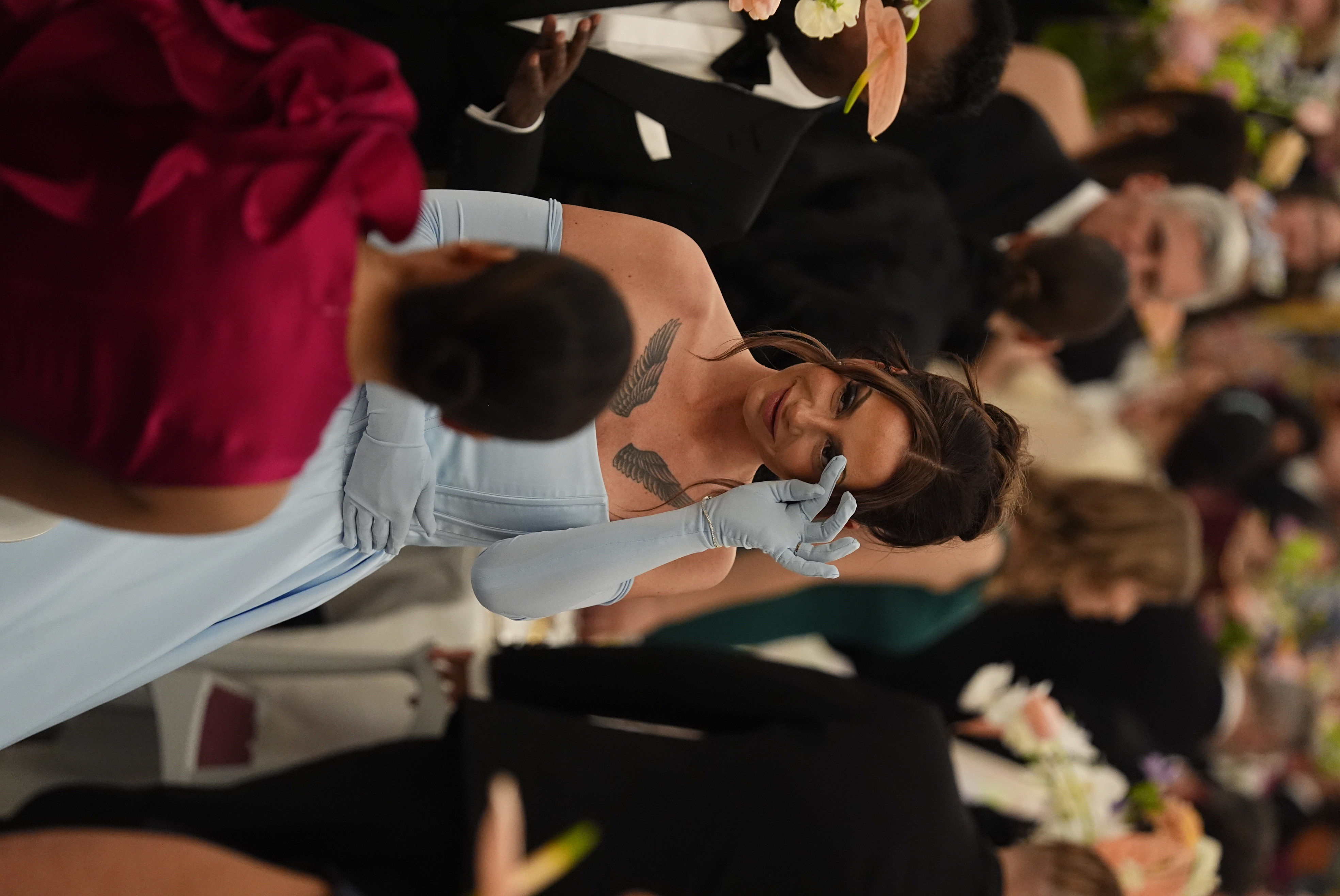 Tessa fangede fotografernes blik i Riddersalen i smukt babyblåt skrud