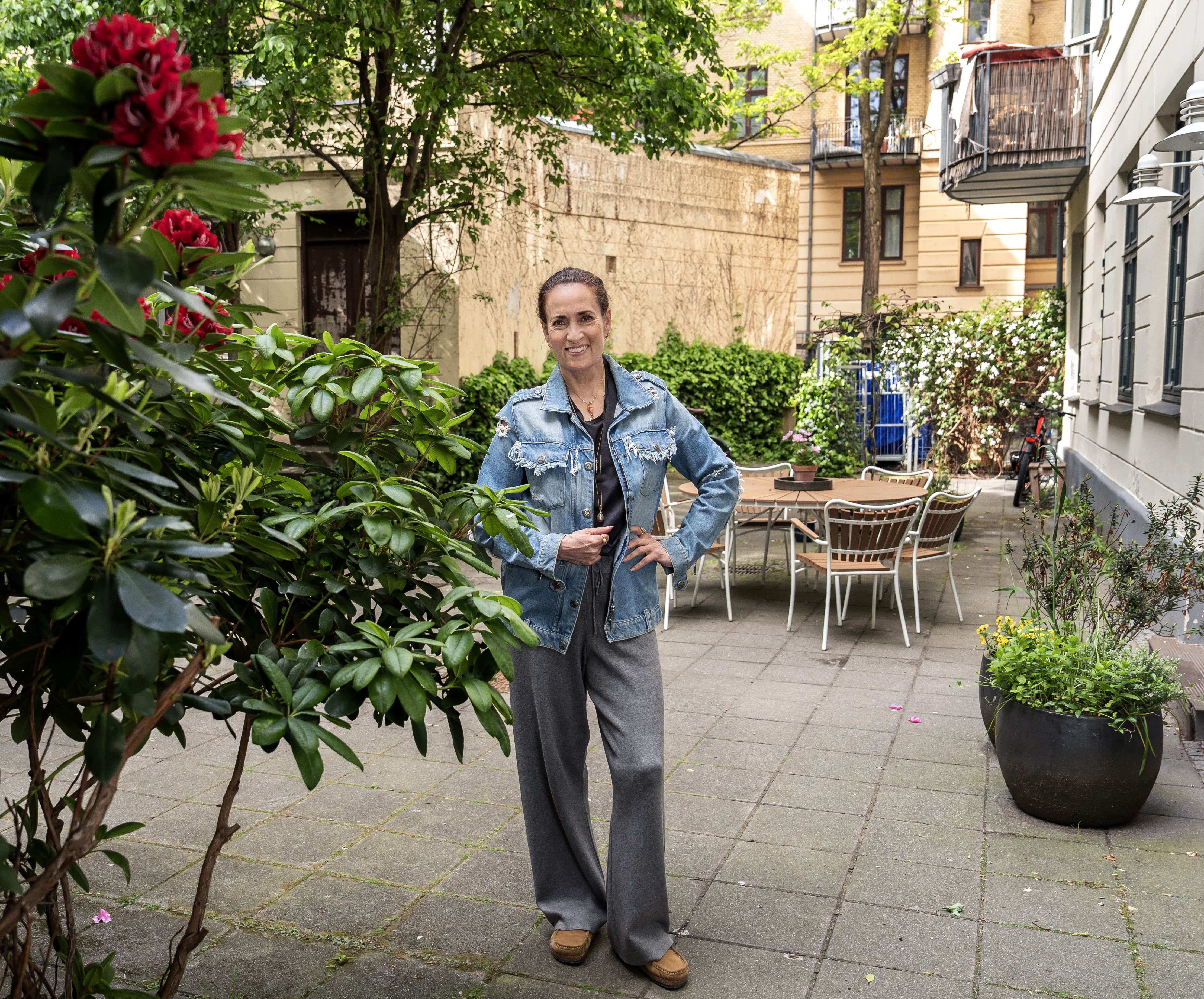De tre værelser i den skønne lejlighed deler hun med sin 20-årige datter Sophy og den 12-årige finske laphund Laya. En flytning, der var en nødvendig konsekvens, efter den travle producent m.v. for to år siden gik ned med stress.