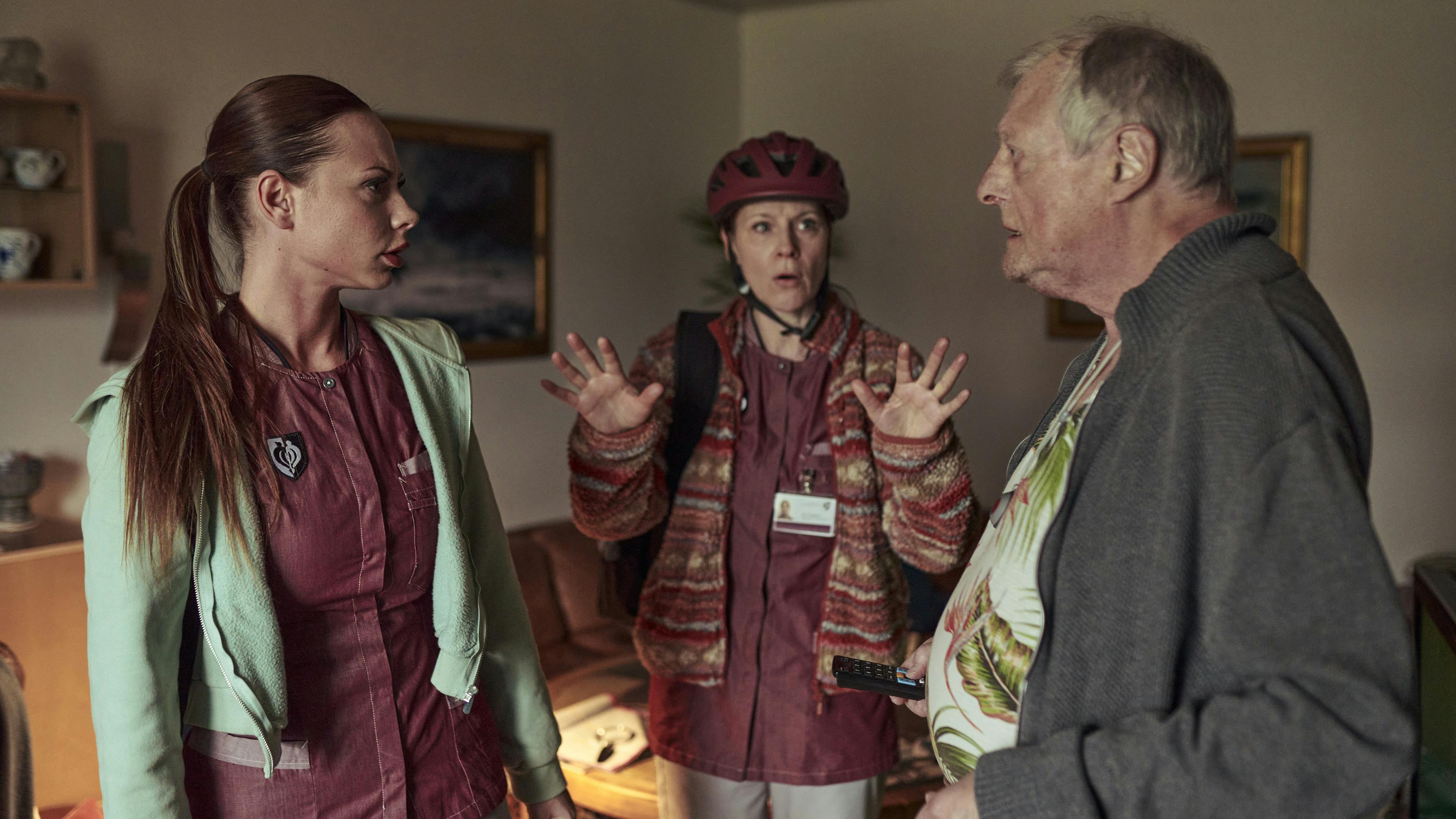 En af dem er den ældre mand Frank, som jævnligt får besøg af hjemmehjælperne Rie og Sille, spillet af Iben Hjejle og Tessa.
