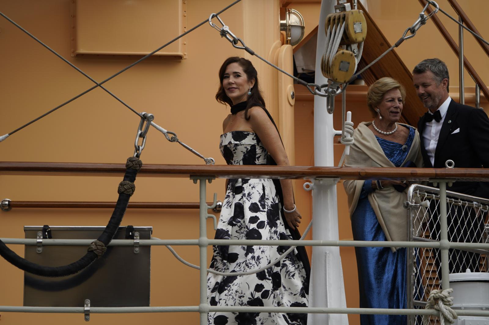 Er lige gået fra borde: Margrethe, Anne-Marie og kronprinsparret på vej til stor aften på Drottningholms Slot