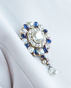 Brochen, som er i guld og er besat med brillanter og safirer, er ifølge Heidi Lauras bog ”En dronnings smykkeskrin” udført i 1800-tallet og har tidligere tilhørt dronning Alexandrine. Hun skænkede brochen til dronning Ingrid, og i 2009 lod dronning Margrethe den gå videre i arv til prinsesse Marie.