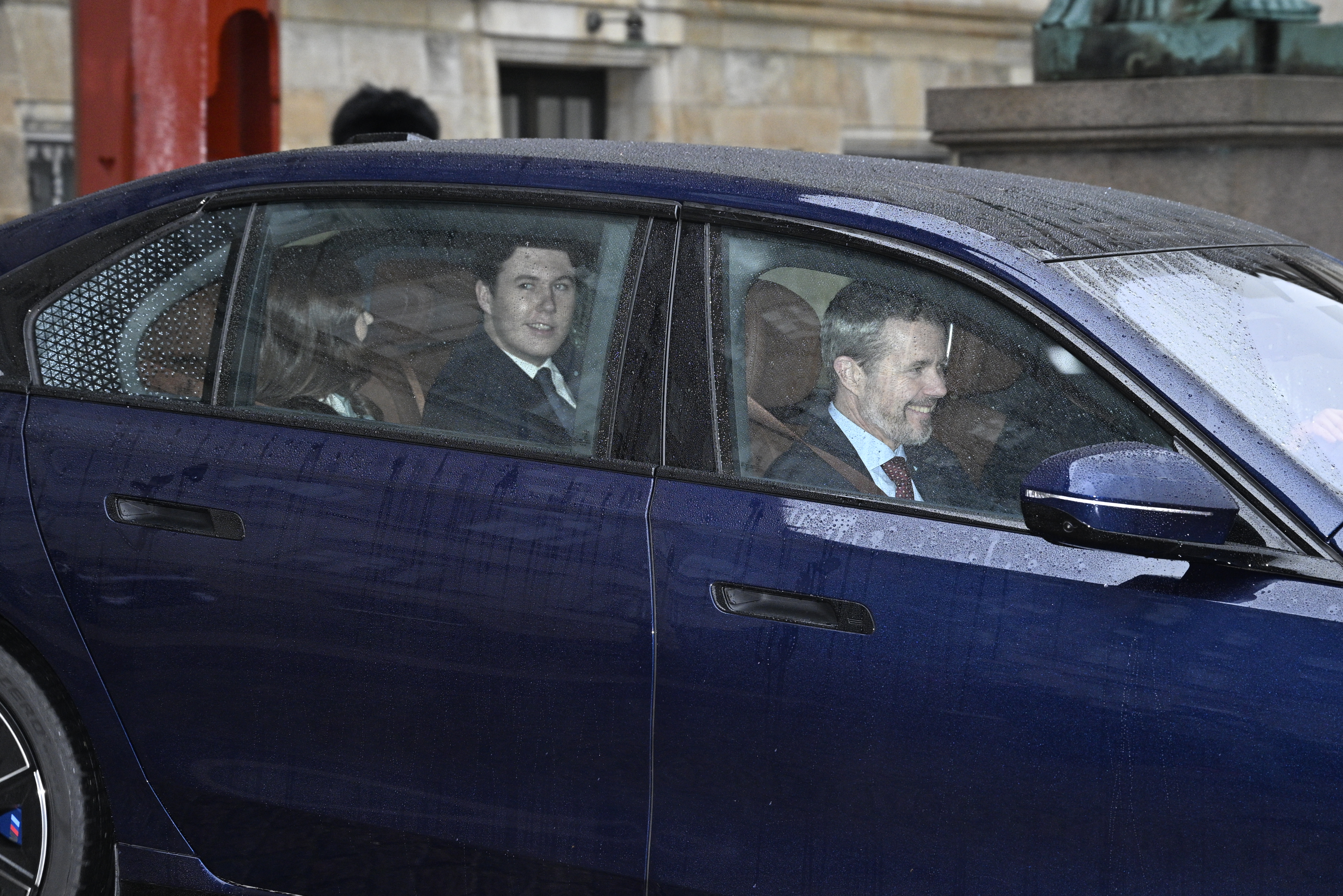 Selv om det er gråt og regnfuldt, var der store smil at spotte bag de duggede ruder i kronebilerne, der kørte ud af prins Jørgens Gård på Christiansborg Slot
